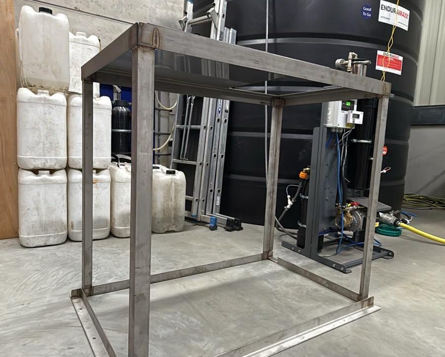All stainless steel frames are precision welded in-house, allowing us to tailor each frame to suit a variety of tank shapes and capacities. Standard options include 350L, 500L, and 650L tanks, with custom-built solutions available to meet your exact requirements.